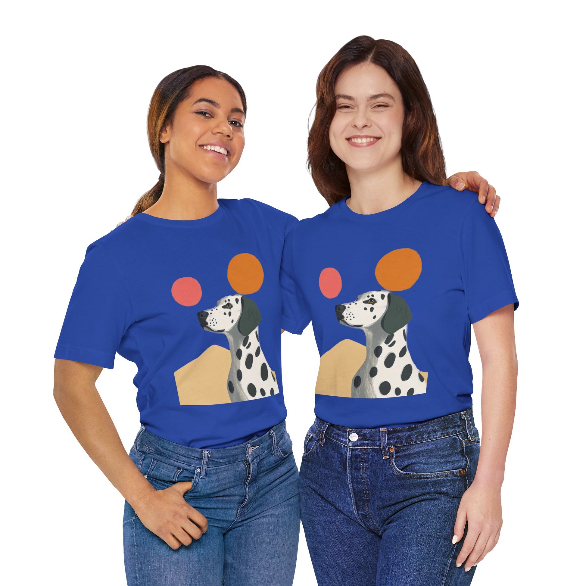 Celebrate the iconic charm of the Dalmatian with this minimalist unisex t-shirt. Featuring bold black-and-white spots set against warm desert hues and abstract sun elements, this design blends contemporary style with timeless dog-lover appeal. Ideal for casual everyday wear, layering, or gifting, it’s a versatile piece that highlights both elegance and personality. Perfect for Dalmatian fans, dog enthusiasts, or anyone drawn to clean, artistic fashion.