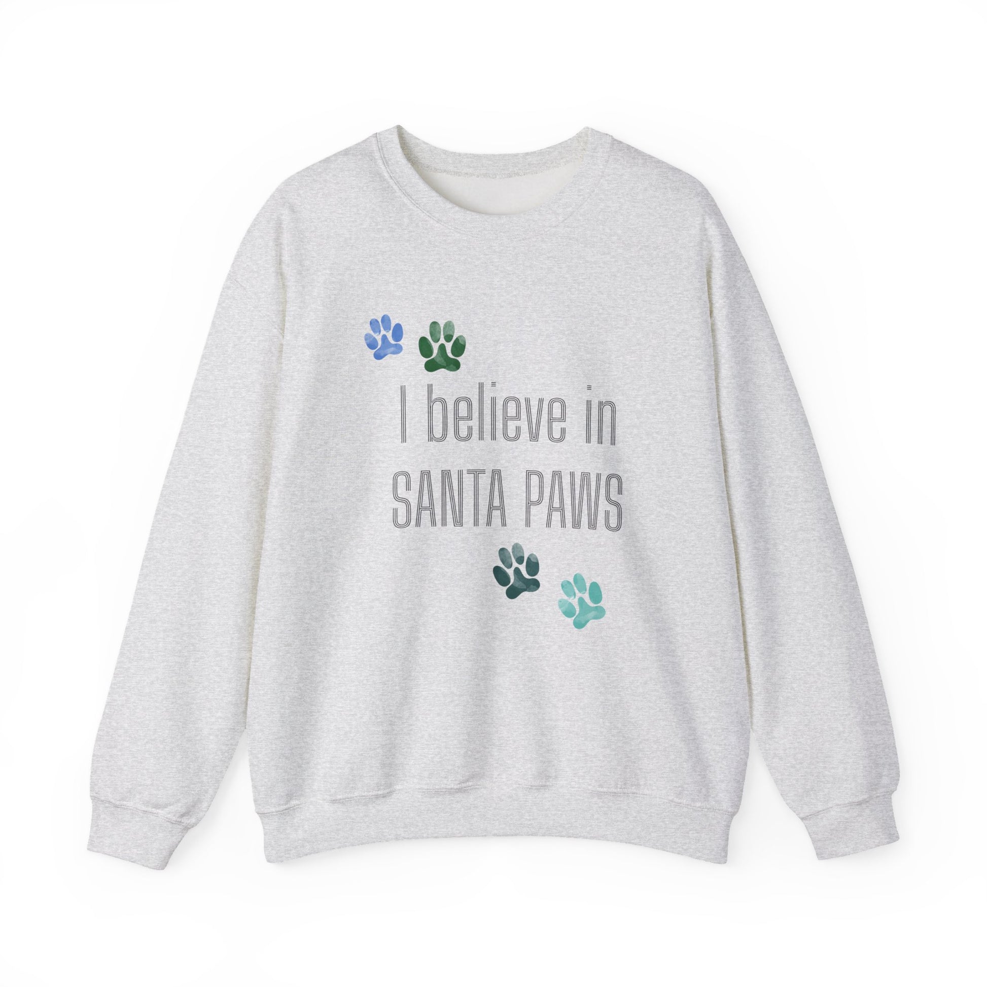 Keep the holiday spirit alive with this charming and cozy unisex sweatshirt! Featuring the fun, festive phrase, "I believe in SANTA PAWS," surrounded by colorful paw prints, this soft fleece is perfect for dog lovers during the Christmas season. It's an ideal piece for holiday parties, opening presents, or snuggling up with your favorite furry believers.