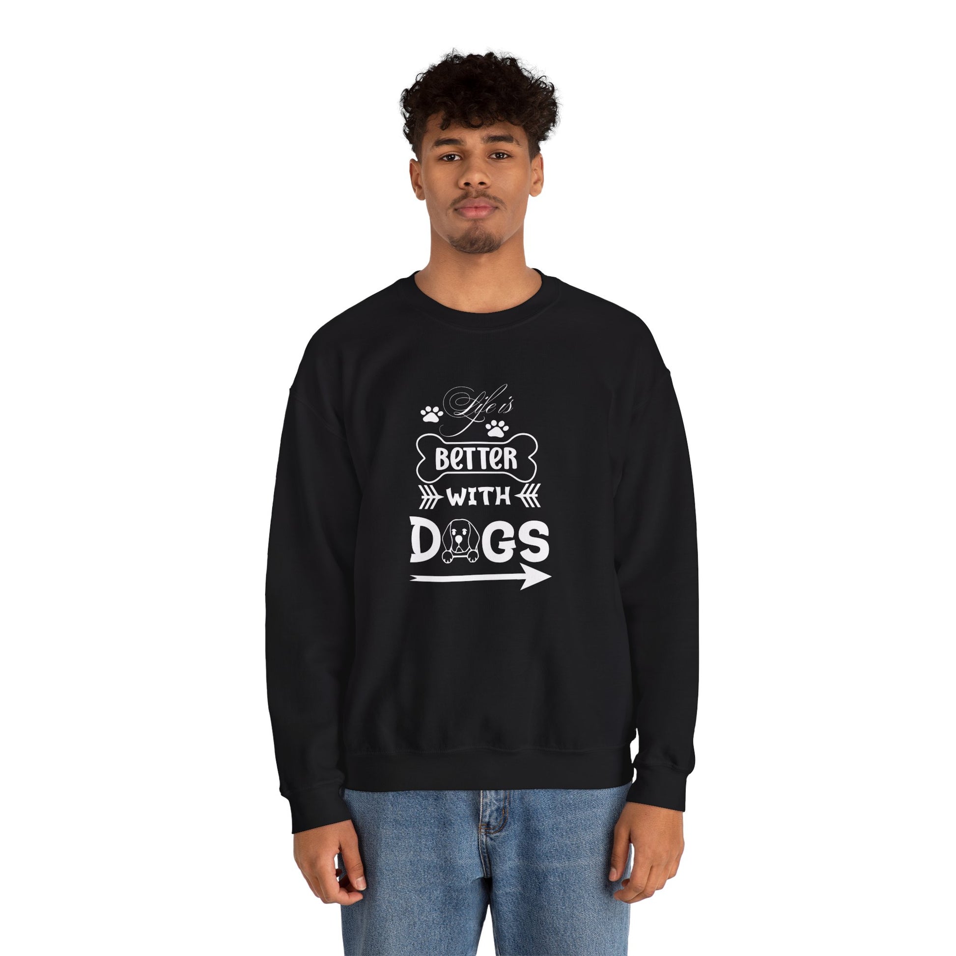 Make a clear statement about your happiness! This cozy unisex sweatshirt features the undeniable truth: "Life is Better with Dogs." With a fun graphic that includes a cute puppy, a bone, and arrows, this soft and comfortable fleece is perfect for any dog lover who knows where true joy lies. It's great for casual wear or staying warm during your daily dog walks.