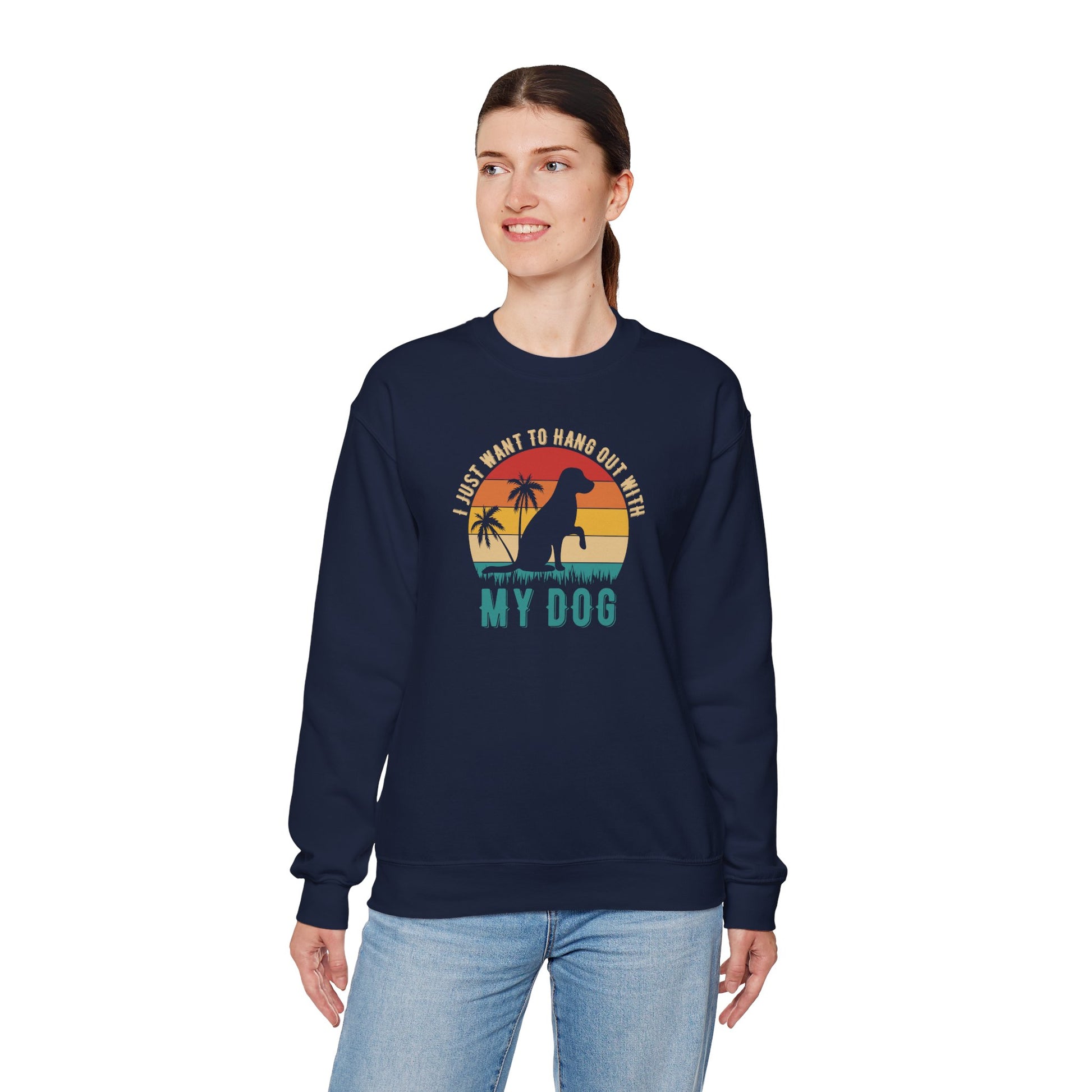 Make your priorities clear with this laid-back unisex sweatshirt! Featuring a cool, retro-sunset design and the quote, "I Just Want To Hang Out With My Dog," this sweatshirt is perfect for anyone who prefers canine company over all else. It's a comfortable, cozy essential for relaxing, walking your dog, or dreaming of the beach.