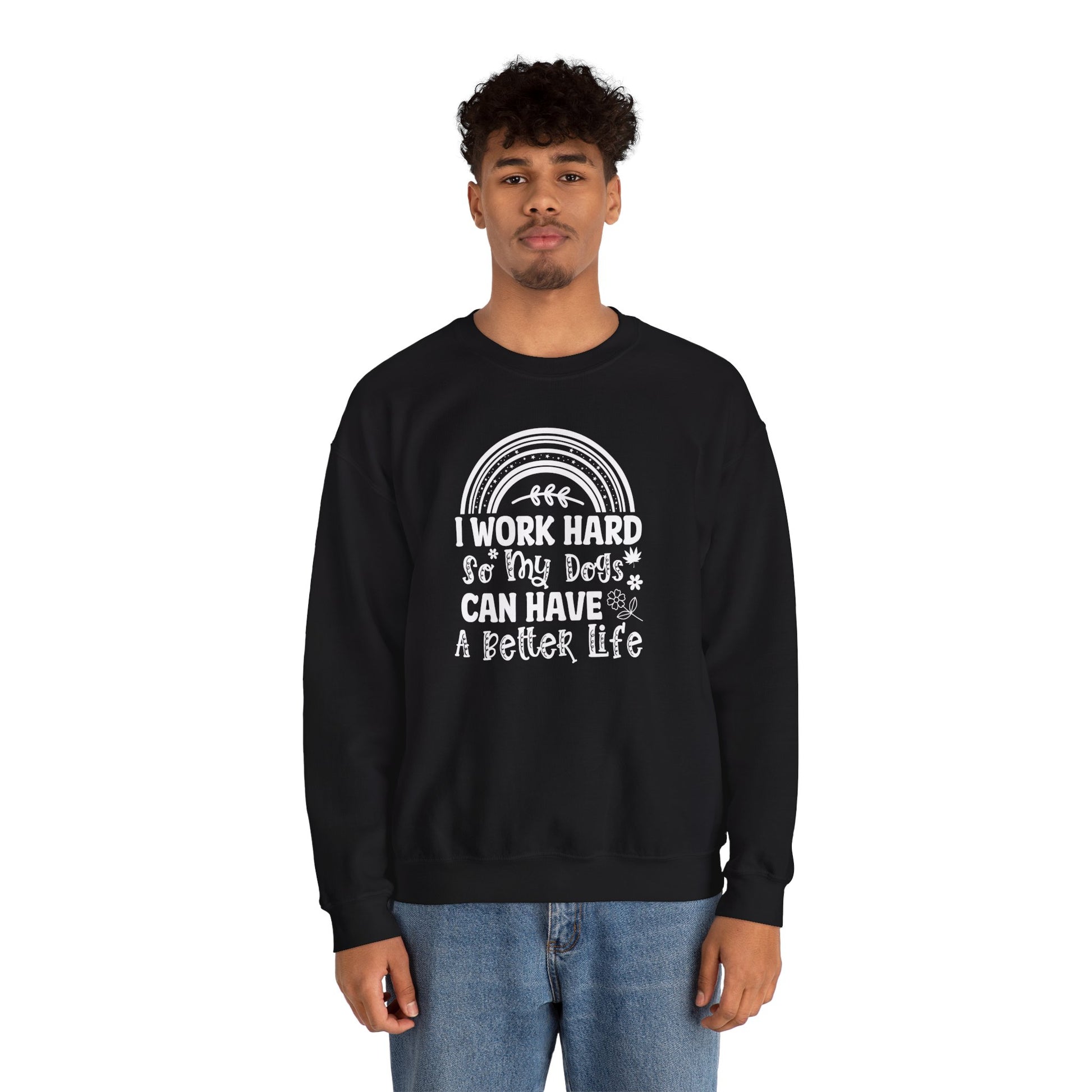 This cozy unisex sweatshirt is for every dedicated dog parent! Featuring a sweet rainbow design and the relatable quote, "I Work Hard So My Dogs Can Have A Better Life," it captures the true spirit of dog ownership. Made from soft, warm fleece, it's the perfect comfortable piece for dog walks, running errands, or simply relaxing with your pampered pups.